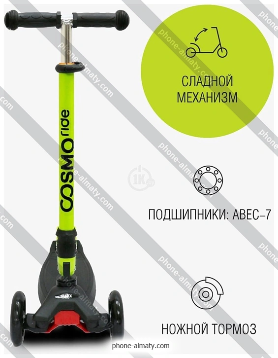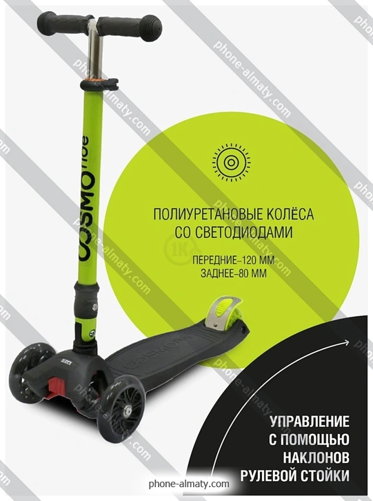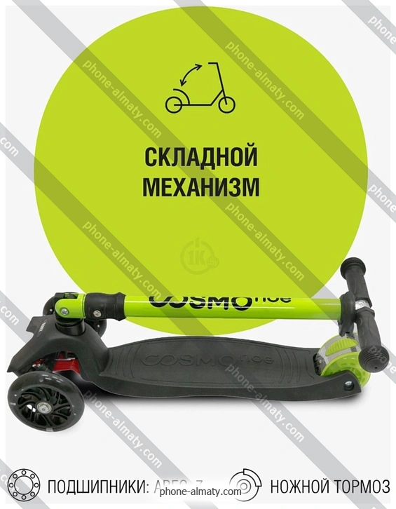 Самокат CosmoRide Slidex S925 (черный/зеленый) купить недорого в Алматы: онлайн-кредит без банка, безпроцентная рассрочка без отказа и бесплатная доставка по Казахстану |