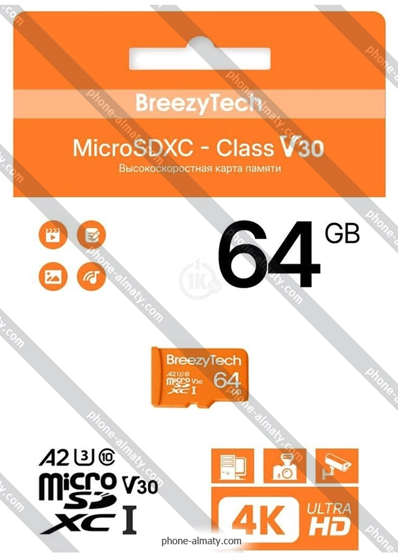Карта памяти BreezyTech Ultra microSDXC Class 10/A2/V30 64GB (без адаптера) купить недорого с бесплатной доствкой по Казахстану