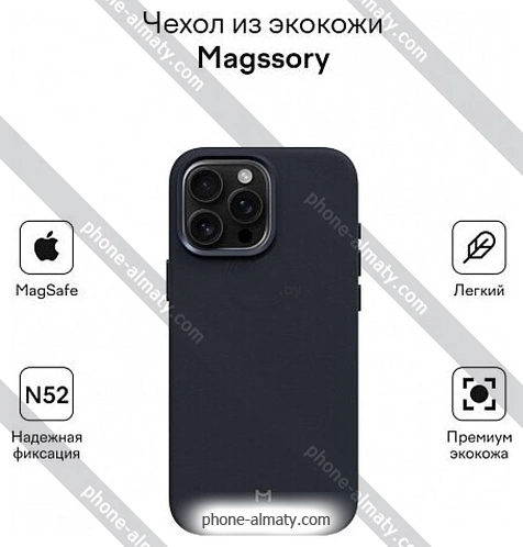 Чехол для телефона Magssory Eco Leather Case Blue для iPhone 16 Pro Max CLT029b купить недорого с бесплатной доствкой по Казахстану