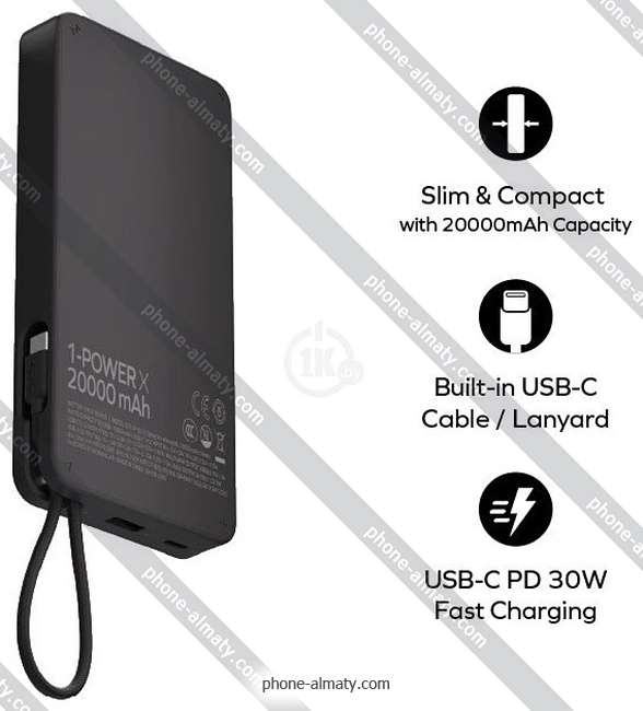 Momax 1-Power X Built-in USB-C IP153 20000mAh, Казахстан