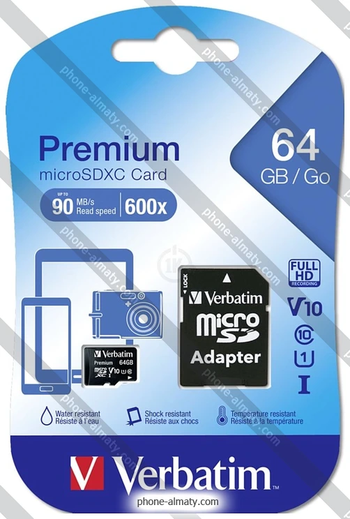 Карта памяти Verbatim Premium 44084 64GB + SD adapter купить недорого с бесплатной доствкой по Казахстану
